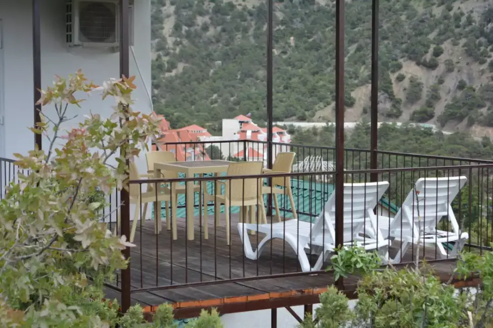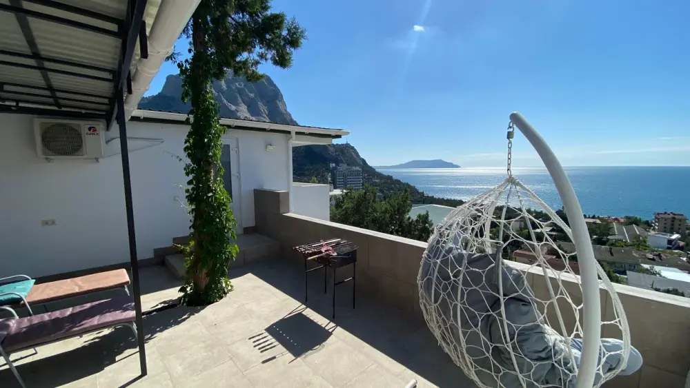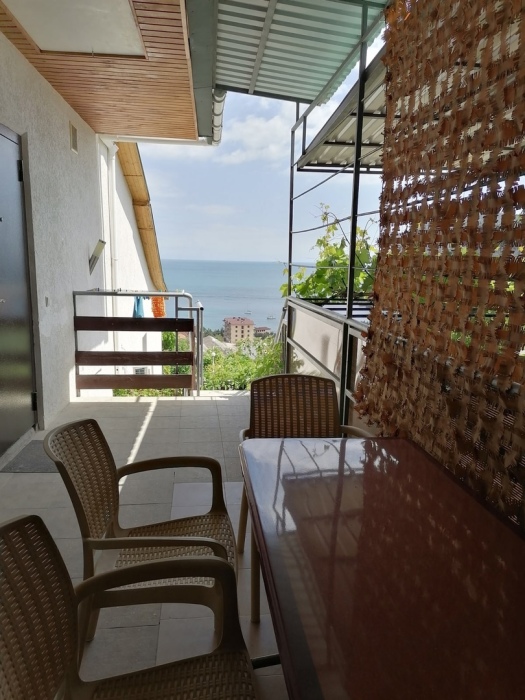 Двухкомнатный номер с балконом и видом на море на 3-6 человек со всеми удобствами. Выход в можжевеловый лес, стоянка для авто, беседка, мангал, интернет, 2-кондиционера, 2 телевизора, большая, кухня, вид с окон на горы.