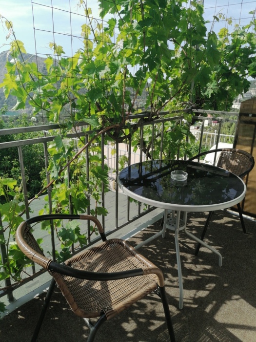 Двухкомнатный номер с балконом и видом на море на 3-5 человек со всеми удобствами. Мангал - рядом возле дома, кондиционер, комнаты проходные, выход в можжевеловый лес, стоянка для авто.