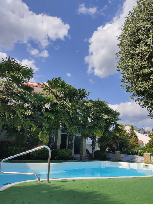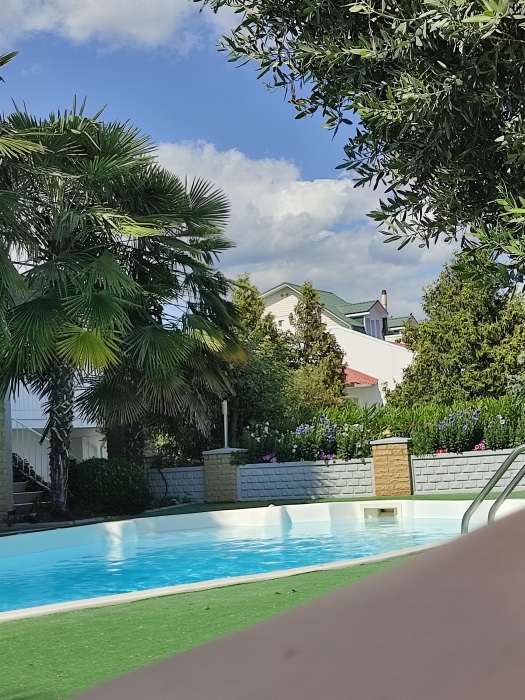 Прекрасный гостевой дом в руках не менее прекрасных, внимательных и дружелюбных хозяев. Большой номер с двумя санузлами, большой кухней со всем необходимым. Наш заезд был вкупе с приятными соседями и детьми, с которыми наши дети постоянно гуляли и играли. Место тихое, спокойное, до моря пешком минут 10-15, пляж широкий и свободный. На территории шикарный бассейн, всегда можно как просто попить кофе, так и полноценно питаться. Всё в цветах вокруг, очень красиво и уютно.