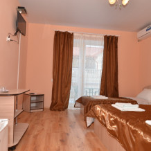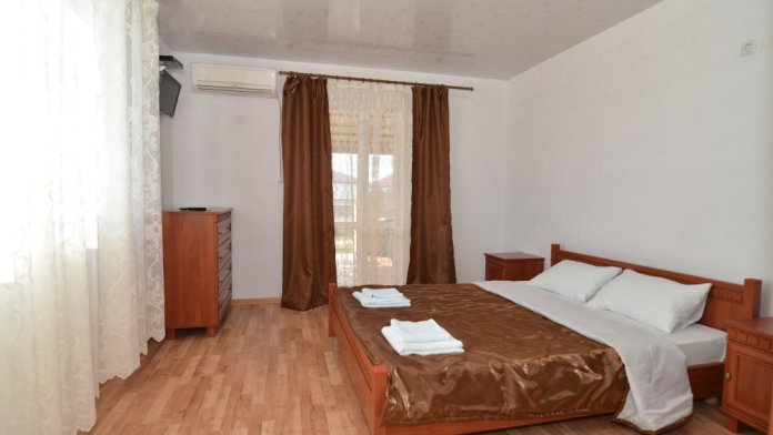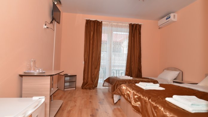 Гостевой дом предлагает большой выбор номеров, оборудованных необходимой современной мебелью, все комнаты имеют балконы или террасы (столик и 4 стула), боковой вид на море, совместный санузел, горячая и холодная вода подаются в гостевом доме круглосуточно. Есть возможность предоставления дополнительного спального места во всех номерах.