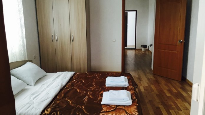 В каждом номере: телевизор плазменный; спутниковое ТV; кондиционер; холодильник; бесплатный WI-FI; полотенца для лица и для тела, гель для душа, графин, стаканы, покрытие пола – ламинат, сушка для вещей. Уборка в номере и смена постельного белья 1 раз в 5 дней.При заселении от администрации комплимент - бутылка вина в подарок!