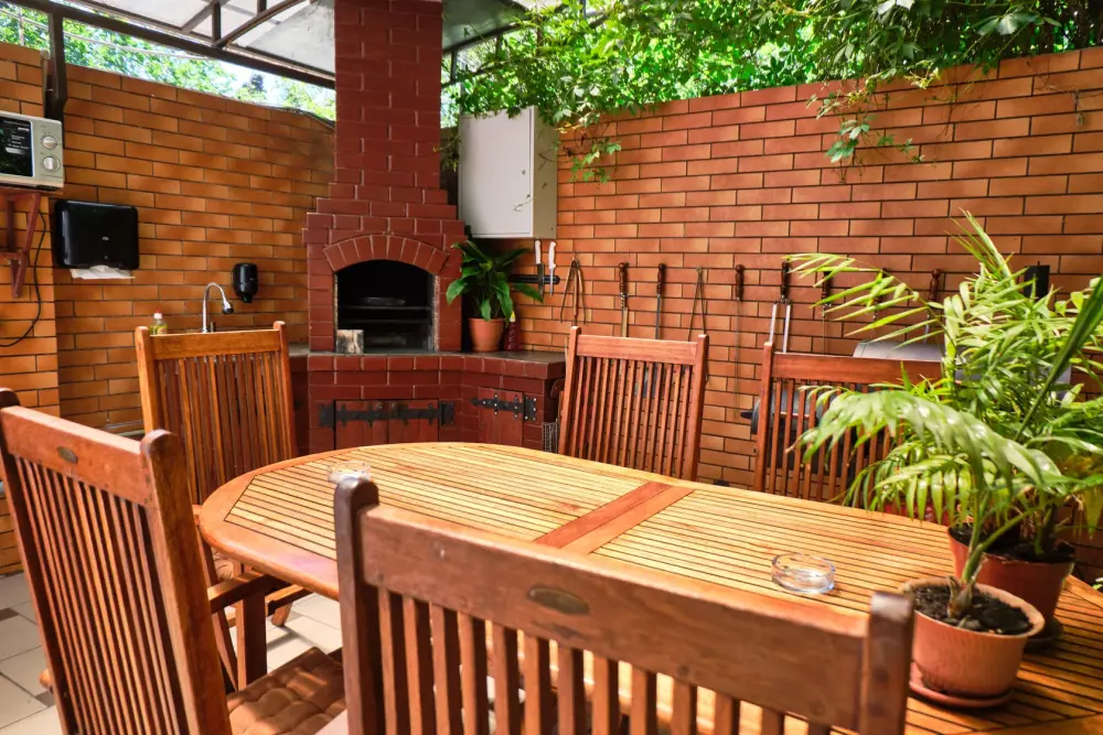 Единственный плюс отеля Анна это хорошая зона барбекю. Ещё близость овощного рынка в 500 метрах и супермаркет напротив отеля. В остальном, посоветовать отель не можем. Расположен на оживленной улице, шум от машин и утром, и вечером. До пляжа минут 30 пешком по загазованной улице или 2 остановки на троллейбусе и 15 минут пешком. Вся мебель разваливается, ручка над дверях холодильника сломана, полка холодильника тоже сломана, в результате разбилась бутылка дорогого вина. Номер такой маленький, что дверь комнаты полностью не открывается, а в туалет можно протиснуться только бочком.
