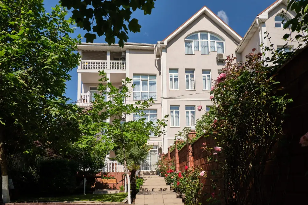 Отель располагается в центральной части Ялты. Расстояние от нас до моря составляет 1 км, что равносильно 15 минутной прогулке или 5 минутной поездке.