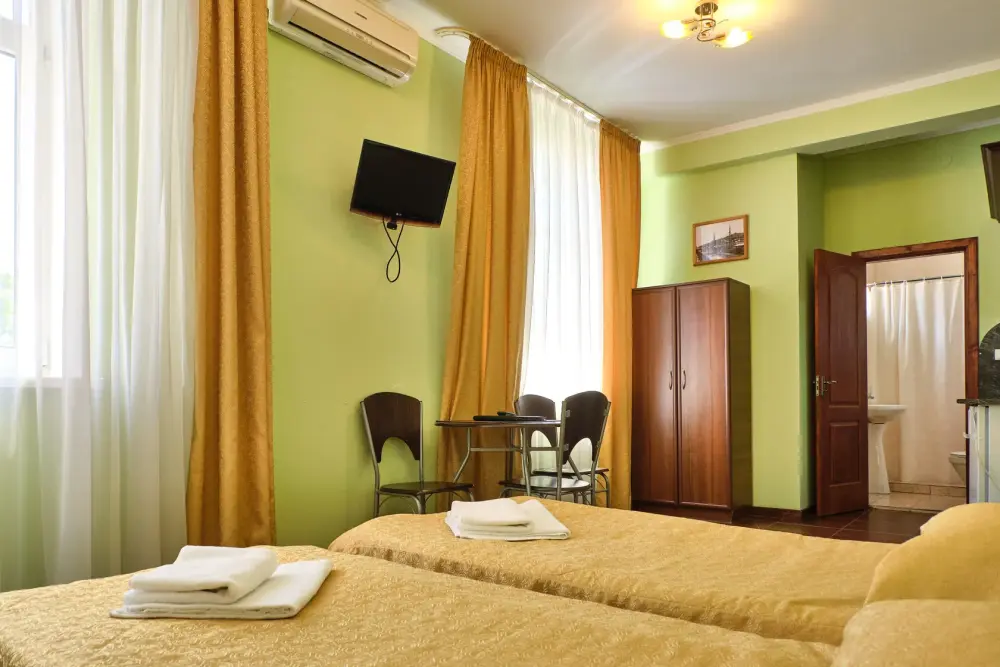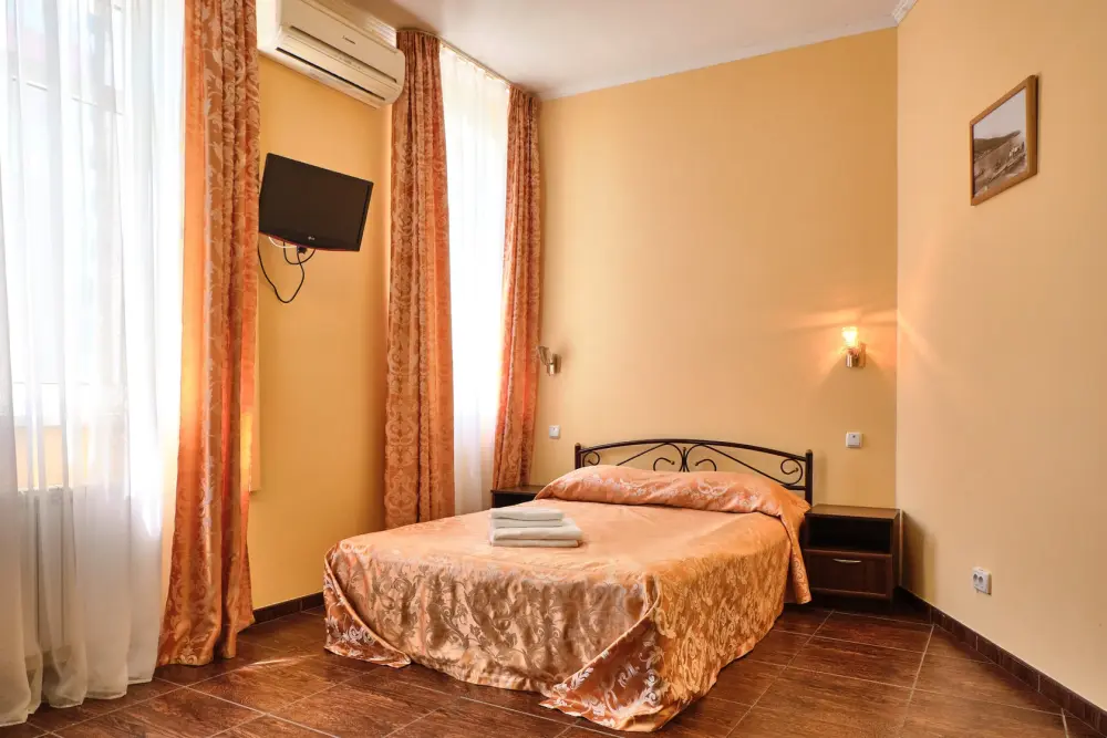 Гости могут разместиться в номерах разных категорий: Стандарт, Стандарт улучшенный, Полулюкс и Люкс. Каждый номер оборудован кондиционером, Wi-Fi, отоплением, TV, полностью оборудованной кухней, санузлом, белоснежным постельным бельем и полотенцами.