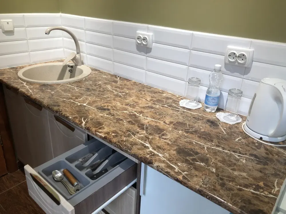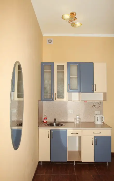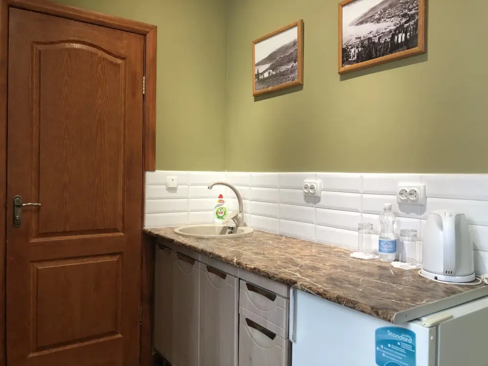 Пищу можно приготовить на просторных, полностью оборудованных кухнях, которые есть в каждом номере.