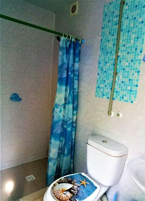 Просторные трехместные апартаменты. В каждом апартаменте: небольшая уютная веранда с мебелью, телевизор, холодильник, кондиционер, мебель, санузел (душ, унитаз, умывальник), бойлер, газовая плитка.