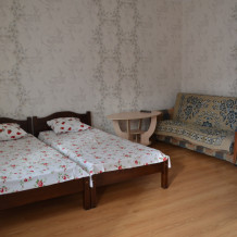В номере санузел,телевизор,кондиционер,wi-fi,кухня отдельно общая, имеется все необходимое(газовая плита,микроволновка,посуда),стиральная машина.