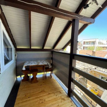 В капитальном гостевом доме (кирпичном, он находится на одной территории с коттеджами), сдаются комнаты только на втором этаже. С хорошим ремонтом, большим холлом оборудованным кухней на 3 комнаты. Индивидуально в комнатах - кондиционер, холодильник, телевизор с кабельным тв, большой балкон на котором стоит стол и сушилка для белья.