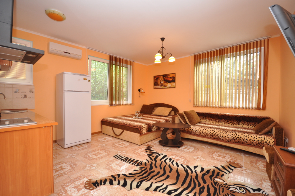 4-местный номер: В номере комфортно размещается 4 человека. В номере есть: кухня и ванная комната, ТВ и кондиционер, просторная терраса, стиральная машинка. В 50 метрах от дома - бесплатная парковка.
