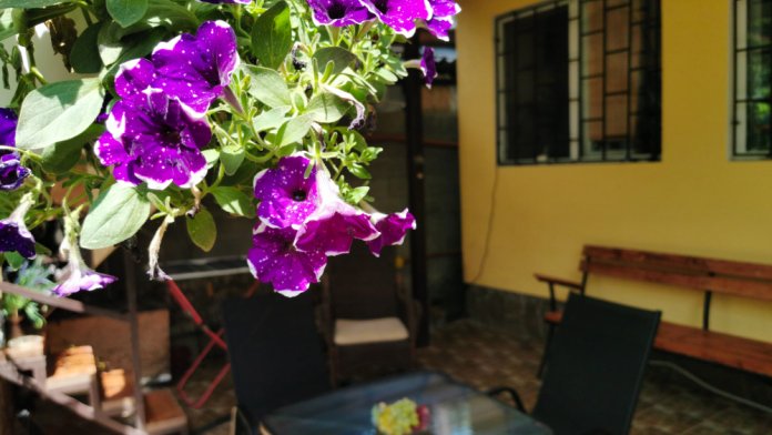 Есть свой уютный тенистый закрытый двор с садовыми качелями, столиком.