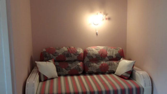 В спальне есть двуспальная кровать, раскладное кресло, телевизор. Комната прохладная, просторная.