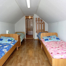 Номер в садовом домике старой постройки. В номере панцирные полуторные кровати с ватными матрасами, есть балкон, основной недостаток - неудобная крутая металлическая лестница, низкий потолок , удобства во дворе общие.