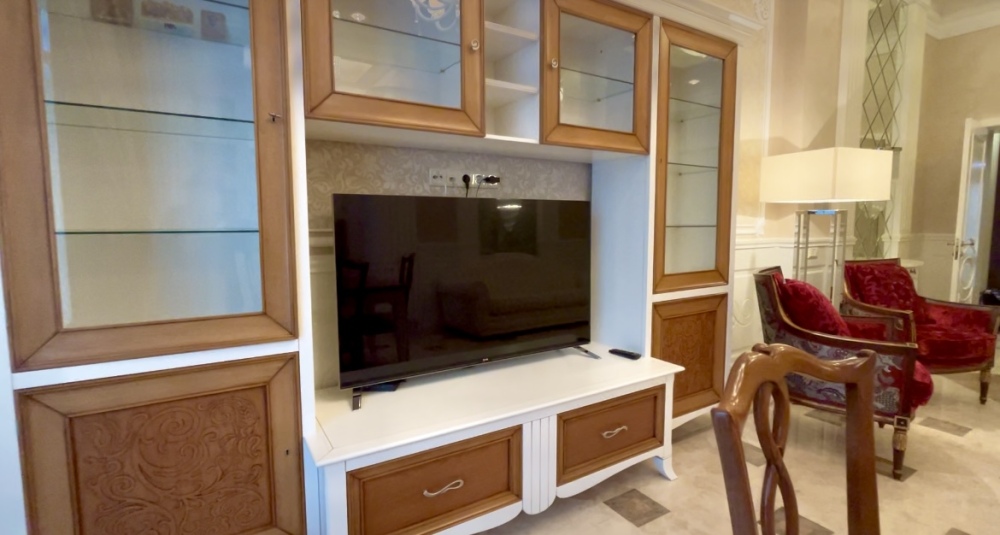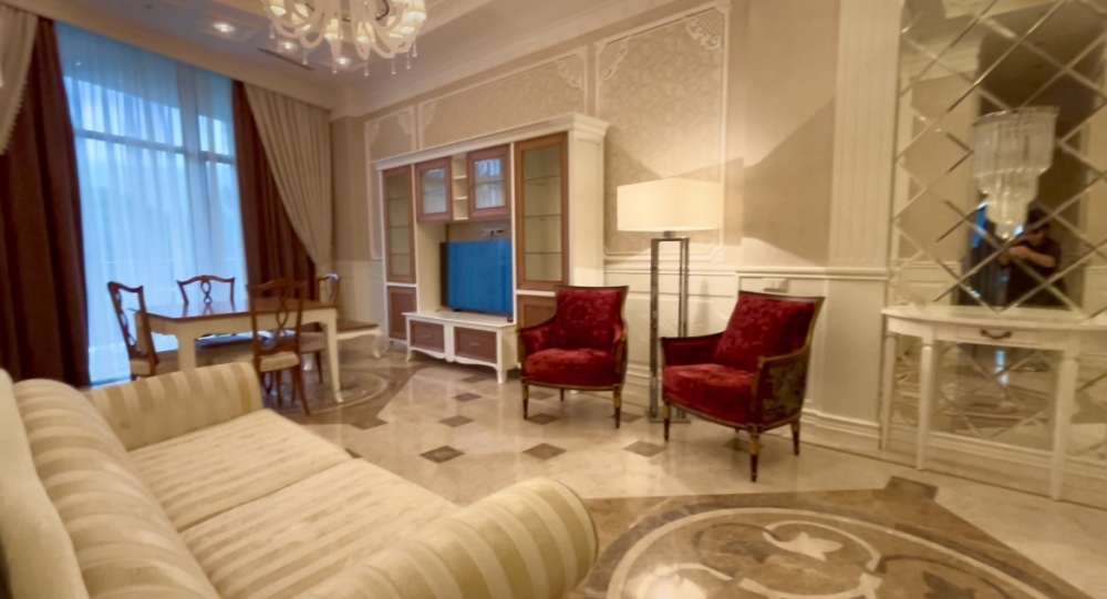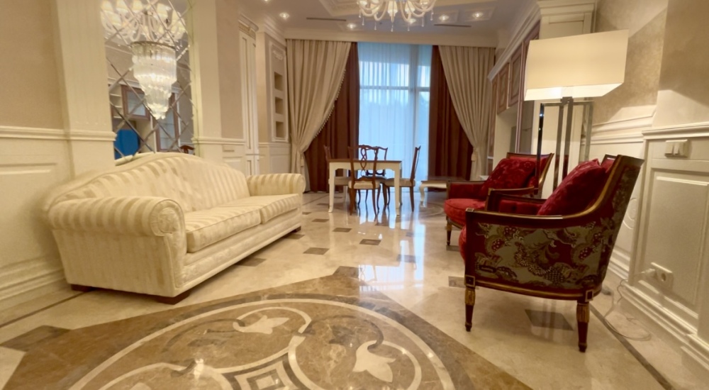 - Спальни: В каждой спальне — комфортабельная двуспальная кровать, ЖК-ТВ, шкаф для вещей и выход на балкон.