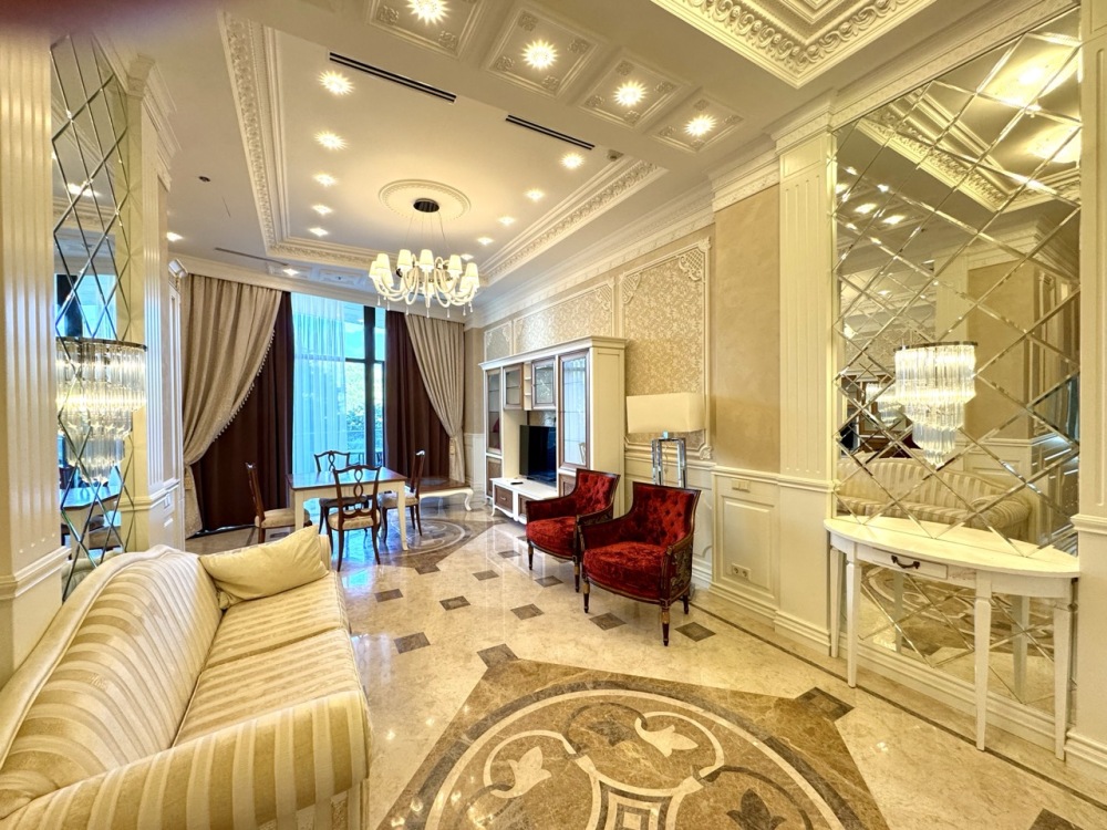 - Простор и комфорт: Апартаменты идеально подходят для семьи или компании друзей. Просторная гостиная-кухня объединена, а две изолированные спальни обеспечивают полное уединение, так как в каждой есть свой собственный санузел с душевой кабиной