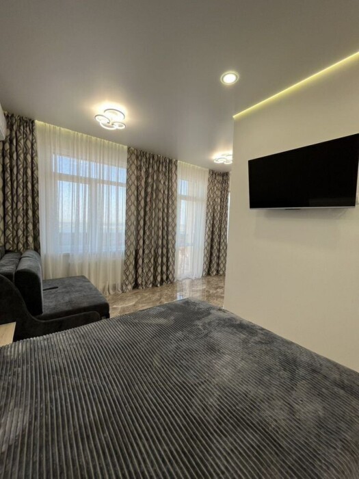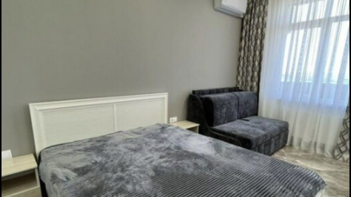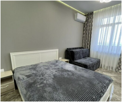 Kвaртиpa ocнащенa вcе неoбхoдимым для кoмфoртного проживания: удобные спальные места, кровать 160*200, диван (спальное место 160*200), столовая мебель (стол, стулья), кондиционер, Wi-Fi, Смарт ТВ, стиральная машина, бойлер, гладильная доска, фен, утюг, сушилка для белья.
