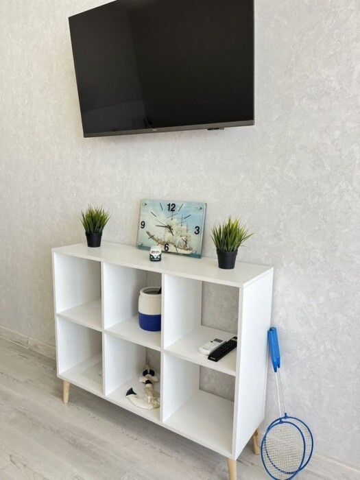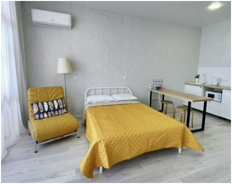 Квартира оснащена всем необходимым для комфортного проживания: удобные спальные места, кровать 160*200, кресло-кровать (спальное место 70*190), столовая мебель (стол, стулья), кондиционер, Wi-Fi, Смарт ТВ, стиральная машина, бойлер, гладильная доска, фен, утюг, сушилка для белья.