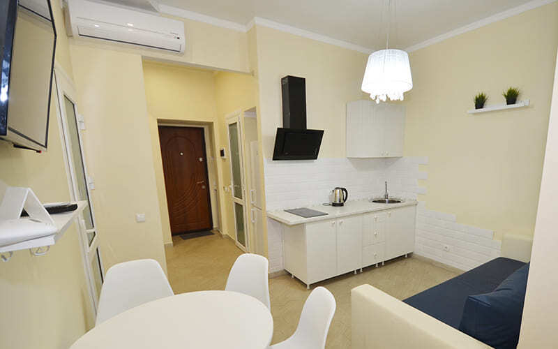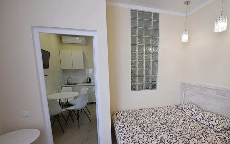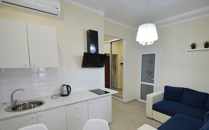 Идеально подойдет для любителей красивых пейзажей, ведь именно этот апартамент имеет собственный балкон с видом на море, и оборудован всей необходимой мебелью для комфортабельного отдыха.