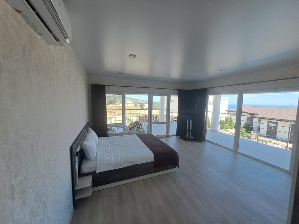 Панорамные окна, потрясающий вид на бассейн и горы. Своя небольшая территория, без соседей. Своя парковка для автомобилей. Мангал, шампуры, решётка. Wi-fi высокоскоростной на всей территории.