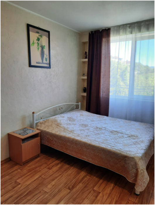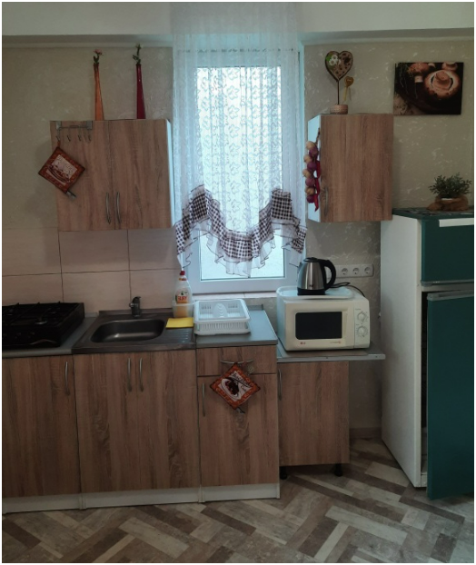 Комната с отдельным входом и балконом . В комнате двухспальная кровать, холодильник, телевизор, кондиционер. Сан. узел, душ. На этаже есть общая кухня для приготовления со всем необходимым. В шаговой доступности вся инфраструктура. Во дворе мангальная зона, смотровая крыша со столиками. Рядом пляж "Лягушка", Милютинский парк.