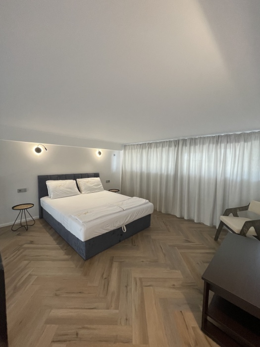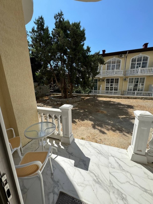- Зона отдыха: телевизор, безлимитный Wi-Fi, кондиционер, двуспальная кровать с комфортным матрасом на втором уровне и уютный диван с большим спальным местом (150*225) внизу, уличный столик с двумя креслами.