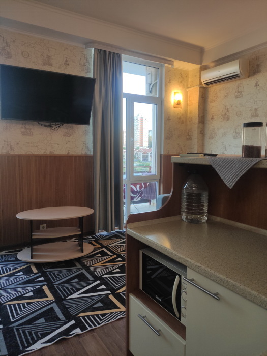 Все для вашего удобства: Большой телевизор для вечерних киносеансов, а также апартаменты полностью укомплектованы всем необходимым для вашего комфортного проживания - от бытовой техники до посуды. Вам останется только расслабиться.
