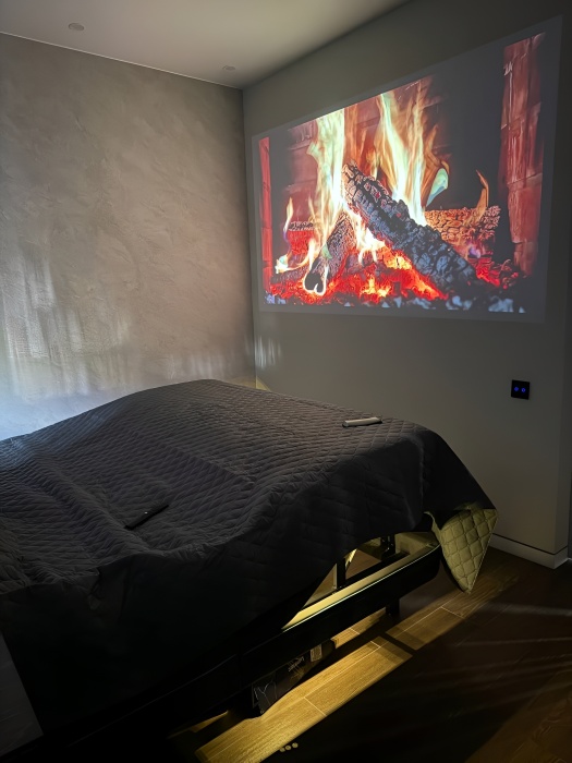 - Развлечения: Проектор в спальне с саундбаром (личный домашний кинотеатр), Hi-Fi звук (усилитель Naim, акустика Elac, сабвуфер Jamo), Sony PlayStation 5 с GTA V и подпиской Plus Deluxe.