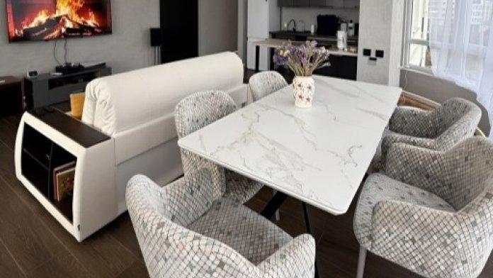 - Техника: Стиральная машина на 10 кг с функцией сушки (до 6 кг), супер тихие премиальные кондиционеры Haier, парогенератор-утюг Braun, робот-пылесос, умные весы.