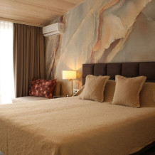 Большой комфортабельный 2-х комнатный номер 40,7 кв. м., с видом на горы, оборудован всем необходимым для отдыха, идеально подойдет для большой семьи. В номере: 2 спальни, 2 Балкона, 2 TV, Wi-Fi. По запросу возможно установить детскую кроватку.