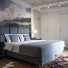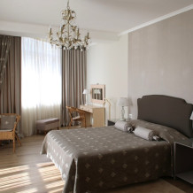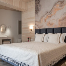 Элегантный и просторный однокомнатный номер площадью 39,5 кв. м. оформлен в классическом стиле и пастельных тонах, с видом на море и горы. Оборудован 1 двуспальной кроватью или 2 односпальными, дополнительным местом (диван), балконом и всем необходимым для комфортного отдыха.