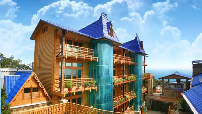 Гостевой дом «Княжий град» расположена в живописной местности, она граничит с территорией Ялтинского горнолесного заповедника с одной стороны, а с другой стороны виллы открывается обширная панорама на море и горы. Гостевой дом представляет собой уникальный деревянный сруб из экологически чистого материала и выделяется необычной архитектурой.