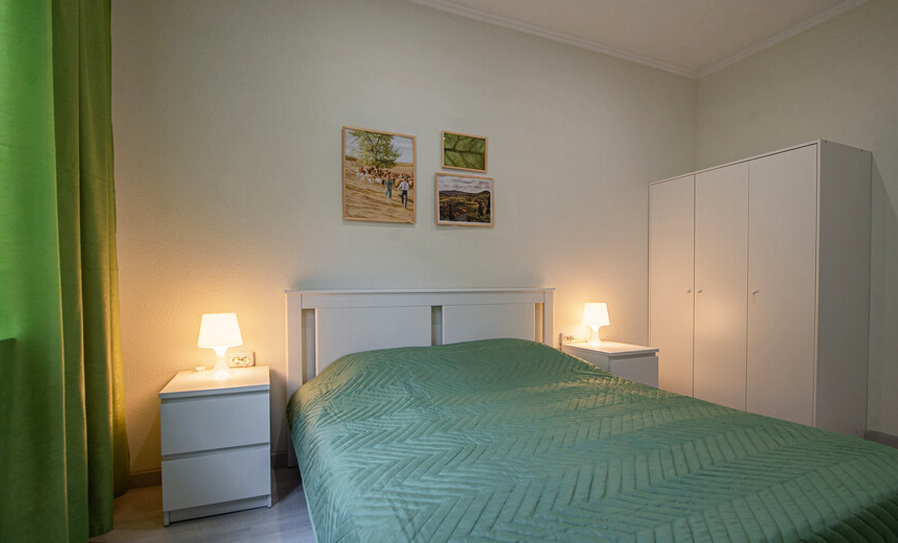 • 2 двуспальных кровати, 1 диван-кровать, детская кроватка (по запросу)