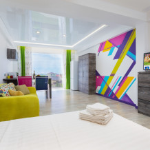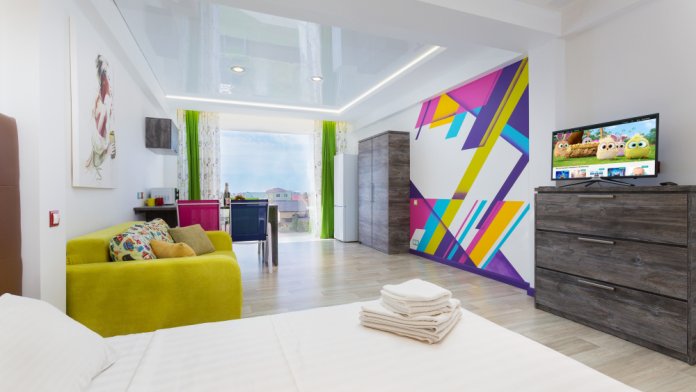 Гармоничное сочетание современного авторского дизайна и особой домашней атмосферы - это просторные номера нашего отеля. Все номера включают спальню с большой двуспальной кроватью, вместительный санузел, оснащённый эксклюзивной душевой кабиной и банными принадлежностями. Большие панорамные окна придают особый летний колорит и делают комнаты более светлыми. Уборка номеров 1 раз в 3 дня. Такие уютные и до мелочей продуманные номера отеля обязательно будут по достоинству оценены взыскательными любителями отдыха в Крыму.