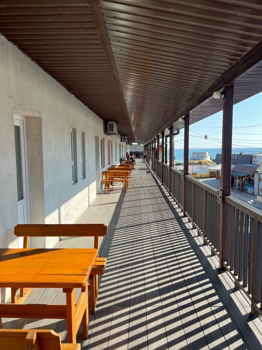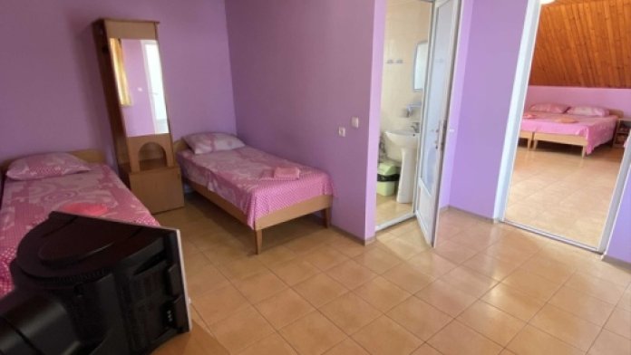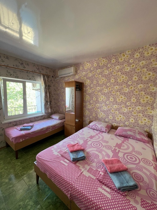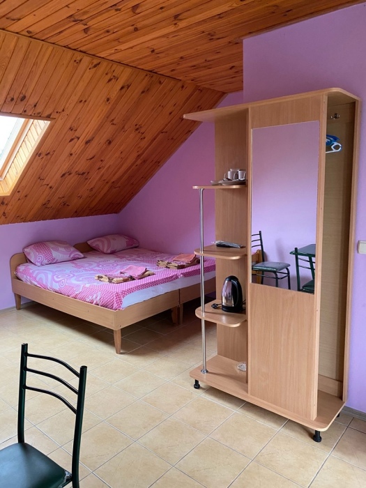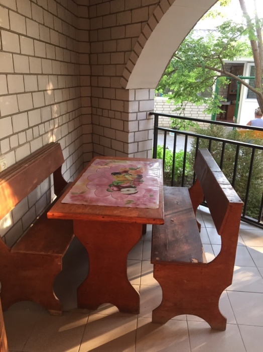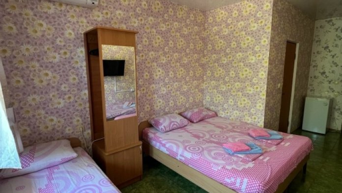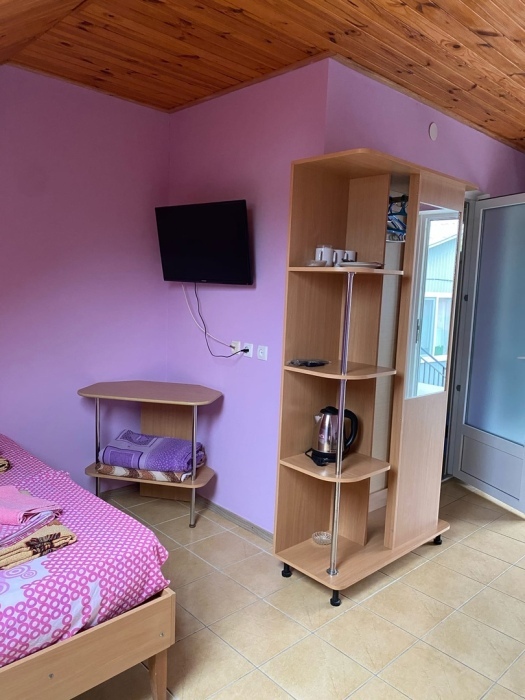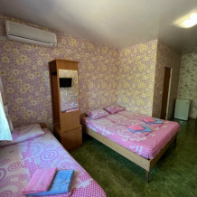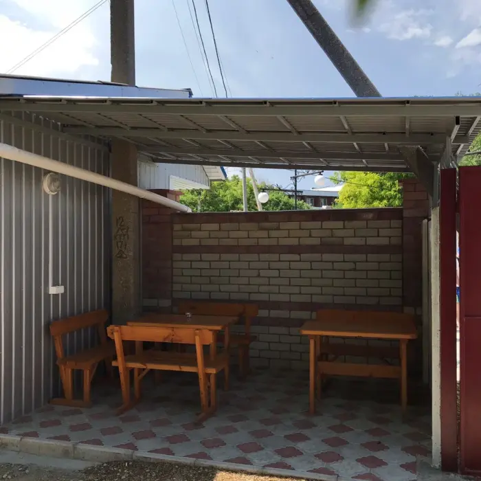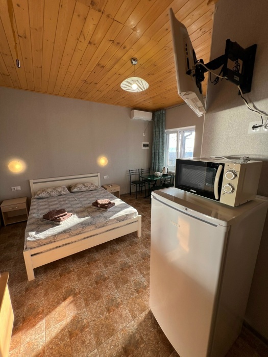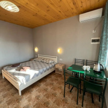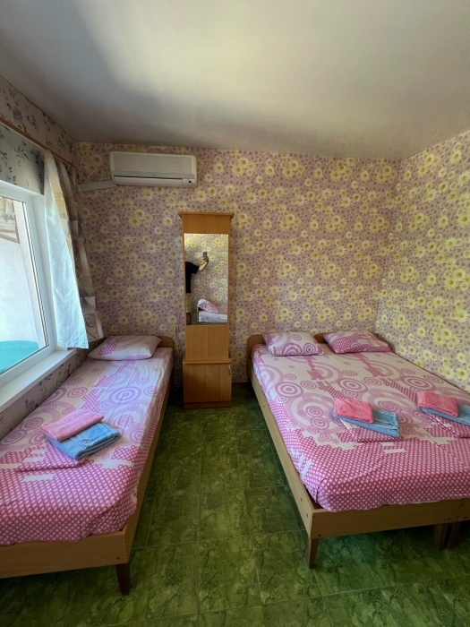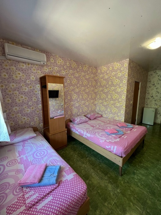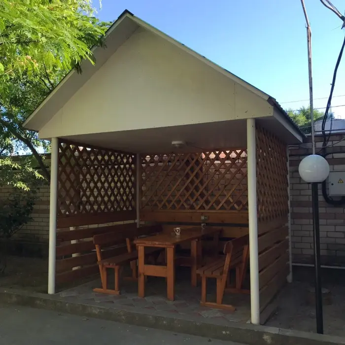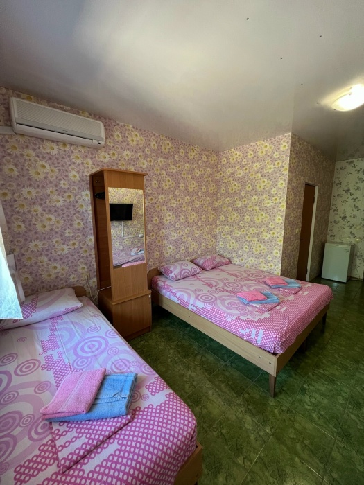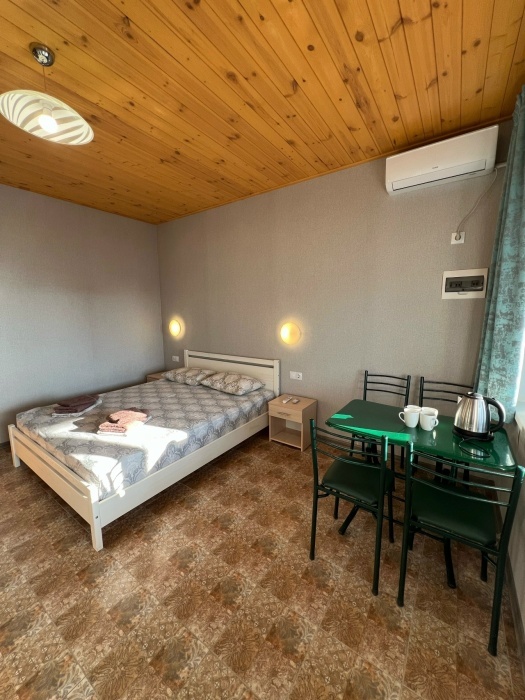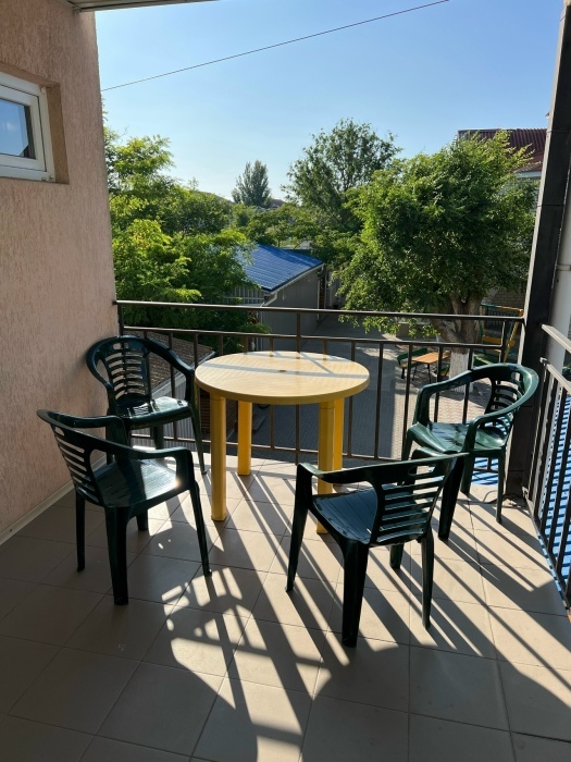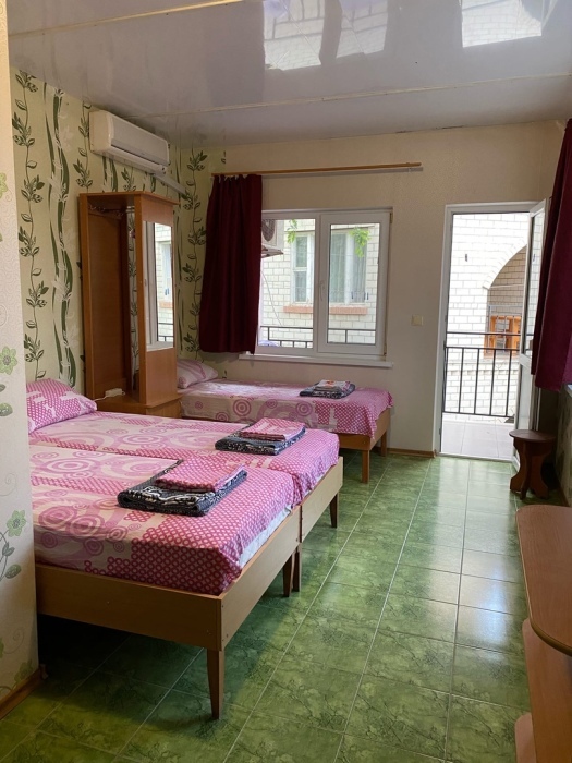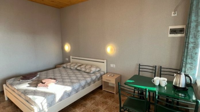 К услугам гостей номера разных категорий и вместимости. Территория гостевого дома благоустроена, есть хорошая детская площадка, горка, качели. Во дворе находится кухня для самостоятельного приготовления пищи, оборудованная посудой. Много беседок на разное количество посадочных мест. На территории находится мангальная зона, к которой подведен свет и вода. Имеется парковка. Во дворе растут огромные деревья, которые защищают наших постояльцев от солнца.