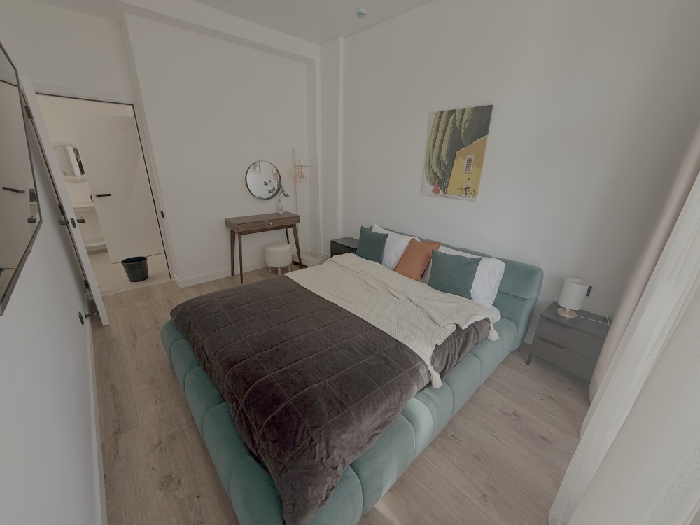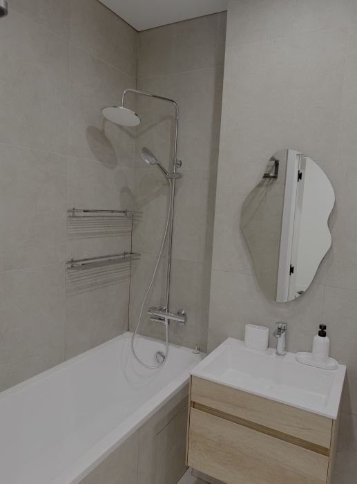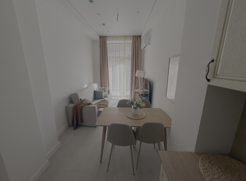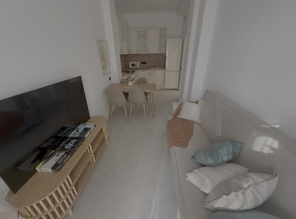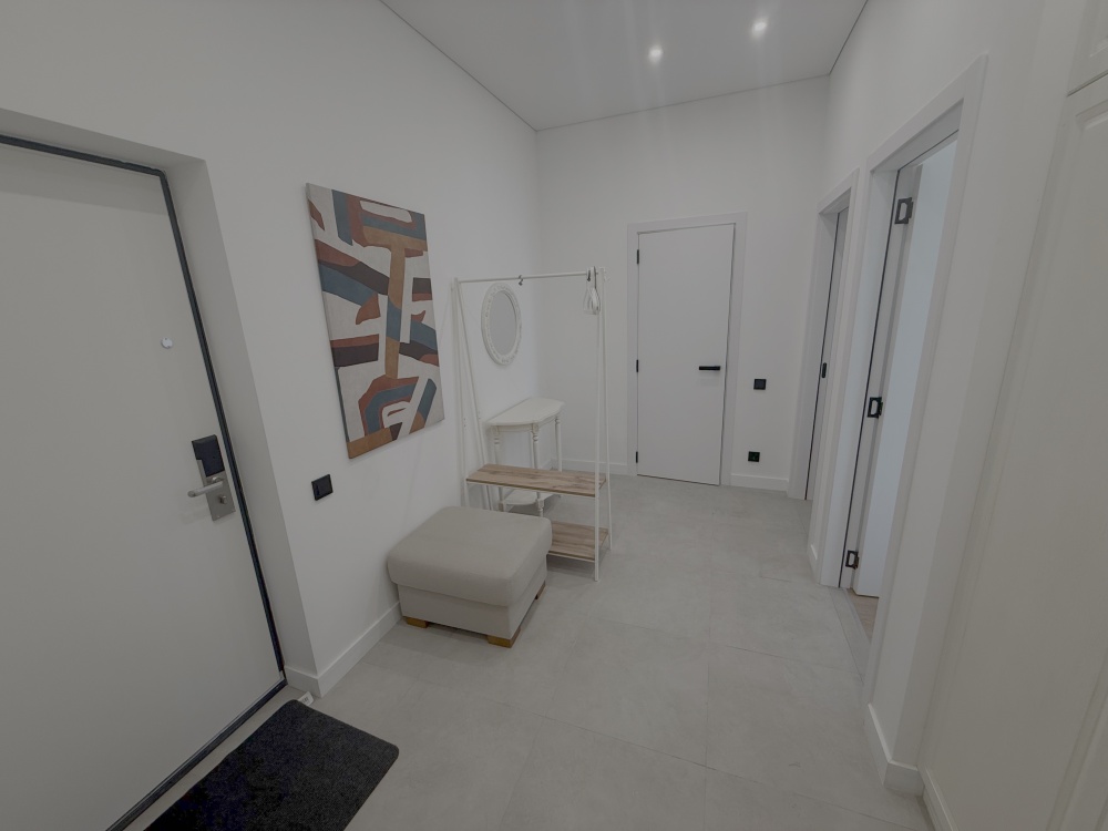 Каждый уголок квартиры оснащён большими экранами Smart TV, позволяющими удобно просматривать любимые фильмы и сериалы прямо из постели или сидя на кухне. Современный дизайн интерьера дополняют стильный санузел с удобной ванной и душем, стиральной машиной, качественной сантехникой и красивым зеркалом.