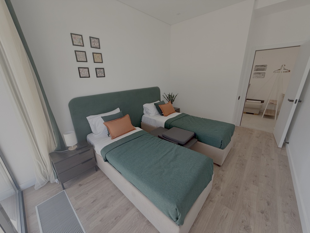Вторая комната идеально подходит как для семейной пары, так и для компании друзей благодаря двум отдельным кроватям 90х200 см, которые можно соединить в одно большое ложе.