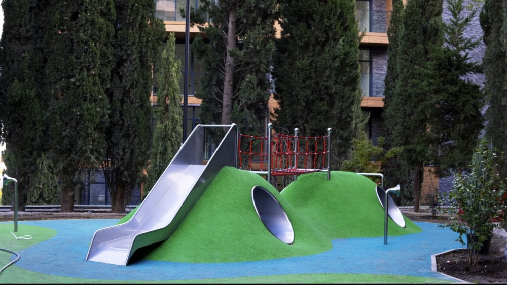 Этот уникальный комплекс представляет собой закрытое пространство, состоящее из 11-ти современных жилых корпусов, утопающих в зелени среди живописных склонов горы Балгатура.
