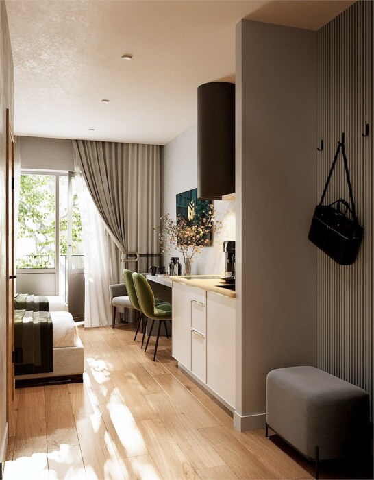 В отеле 38 элегантных номеров для отдыха и продуманные пространства для работы, созданные с заботой о Вашем благополучии. Мы вдохновлялись гармонией природы: в интерьерах использованы натуральные материалы, естественные цвета и живые растения. Окружающая среда наполнена светом, мягкими формами и текстурами, которые напоминают о природе. Это помогает гостям чувствовать себя спокойно, восстановить силы и оставаться в гармонии с собой даже вдали от дома. Наш отель не просто место для ночлега, а хаб для единомышленников - тех, кто чувствует наступление новой эры и хочет быть ее частью. Мы продаем не кровать, а философию, сообщество и уникальный опыт, соответствующий духу времени.