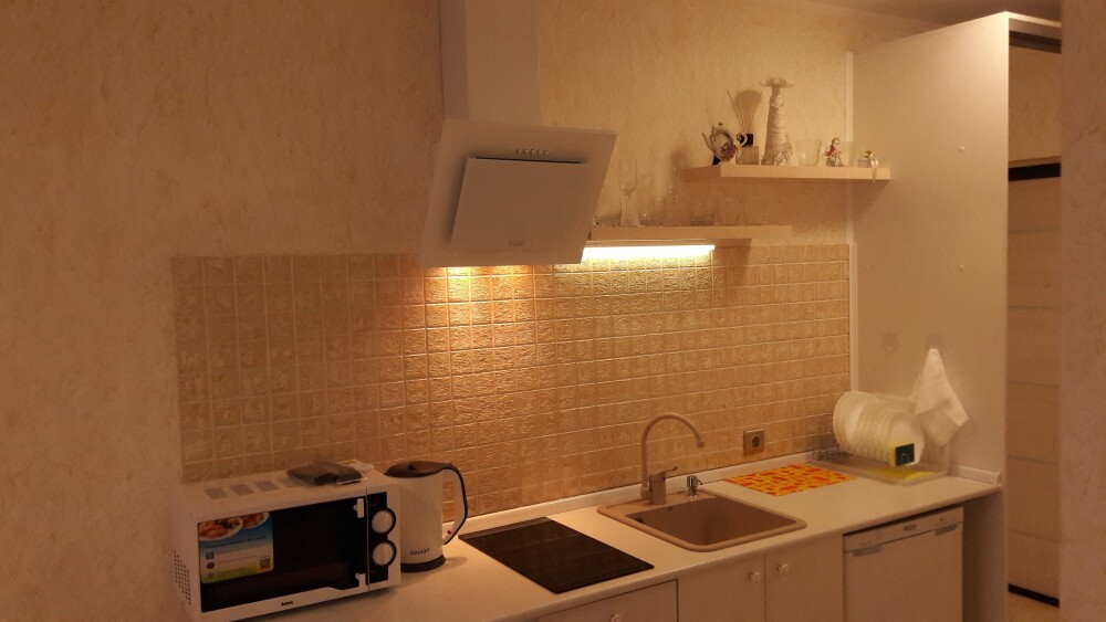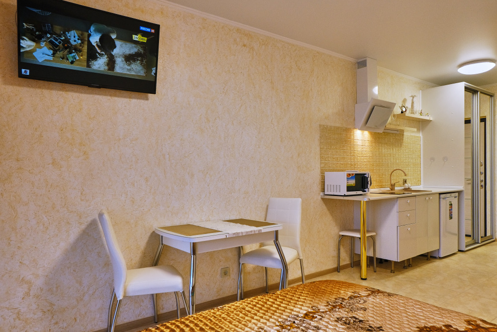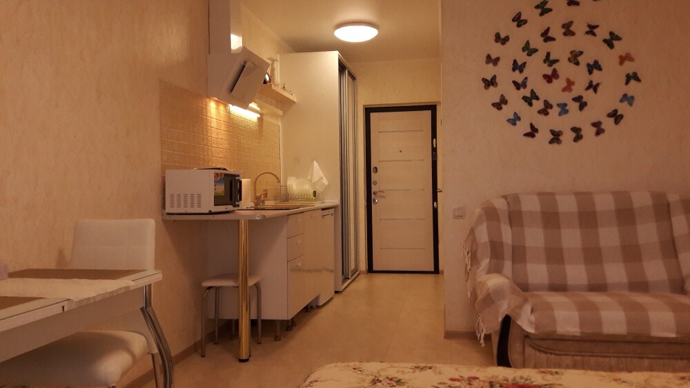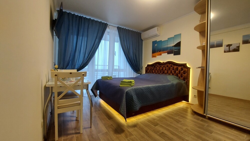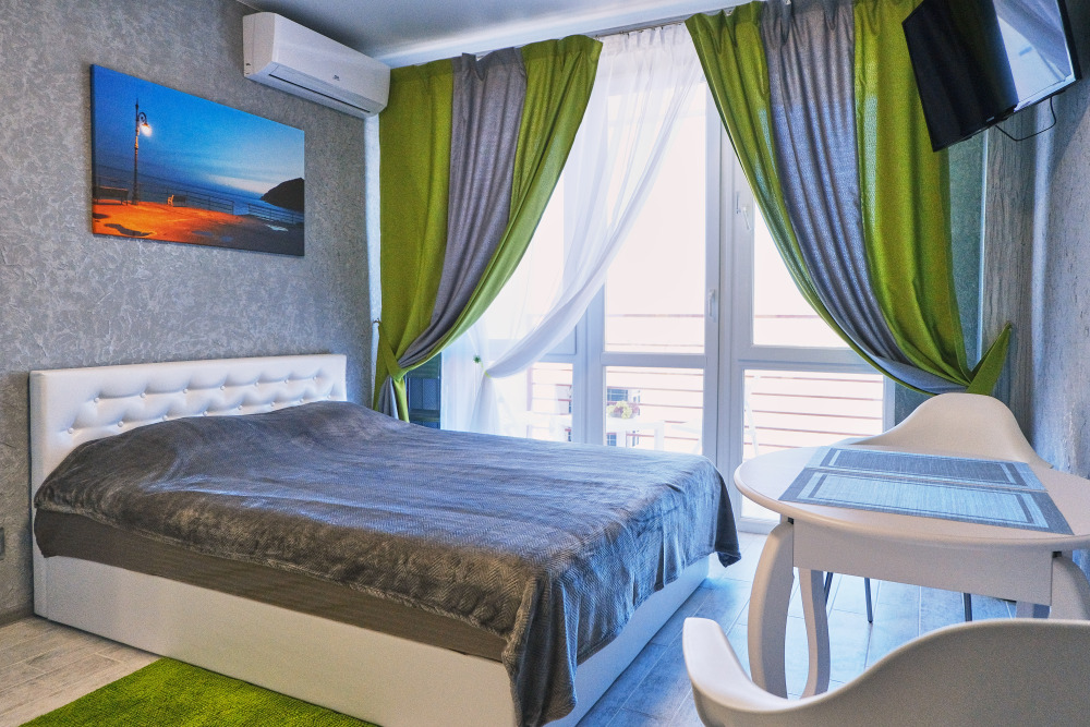 Сдаются уютные апартаменты на четвертом этаже с балконом. Первая береговая линия. Работает лифт. В апартаментах есть все необходимое для комфортного проживания: Wi-Fi, кондиционер, холодильник, телевизор с кабельным/цифровым ТВ, гардероб, стиральная машина, утюг, гладильная доска, сушилка для белья, фен, постельные принадлежности, полотенца, пляжные принадлежности (полотенца, сумка-подстилка). Спальня оборудована удобной двухспальной кроватью 200х160 и креслом-кроватью 180х95. Квартира имеет выход на балкон с видом на горы и море. На балконе расположена садовая мебель (стол и кресла). Кухня оснащена современной техникой (холодильник, микроволновка, индукционная печь, эл.чайник), кухонными принадлежностями, посудой и столовыми приборами. Ванная комната оборудована душевой кабиной, бойлер обеспечивает круглосуточную подачу горячей воды. В квартире предоставлены средства гигиены. На территории комплекса расположены ресторан «Фиолент», продуктовый магазин, небольшое кафе. Парковка бесплатная на территории комплекса. Курение и размещение с животными не допускаются.