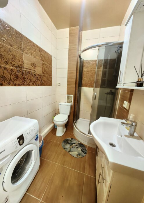 - бытовая техника: кондиционер, плоский телевизор с кабельным телевидением, Wi-Fi, мини-холодильник, двухконфорочная электрическая плита , электрочайник, микроволновая печь, кухонная вытяжка, водонагреватель, стиральная машина, а также утюг с гладильной доской, фен, сушилка для белья,