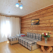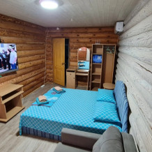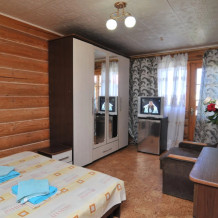 Номера расположены в двухэтажном корпусе гостевого дома. Площадь составляет 50 кв. м. С комфортом может разместиться семья из 4-х человек.