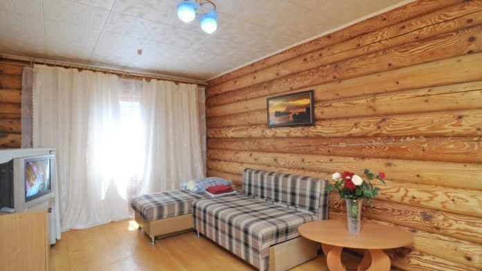 Бревенчатые корпуса со всеми удобствами в номерах. Собственная территория. Бесплатная автостоянка. 800 метров до городского и 950 метров до платного пляжа. Рядом расположены аквапарк и дельфинарий. Питание в кафе или в свободном формате по меню. Бассейн. Беседки. Мангал.