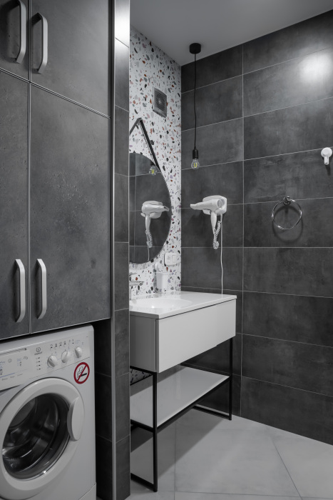 - ванная комната: душевая зона, гигиенический душ, стиральная машина-автомат, тёплый пол;