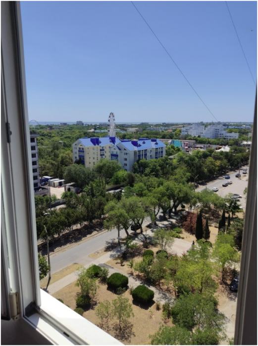 Внутри два кондиционера, два телевизора, стиральная машинка, интернет, микроволновая печь.