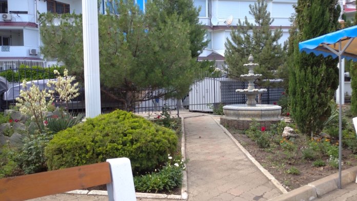 Квартира расположена в эллингах, что в 4 километрах от Алушты. Территория кооператива закрытая, охраняется круглосуточно. Парковка бесплатная. Благоустроенный пляж с бесплатными лежаками и уютная ухоженная Набережная с лавочками, клумбами и фонтанами, возможность рыбачить, кафе с недорогим питанием, продуктовый магазин.