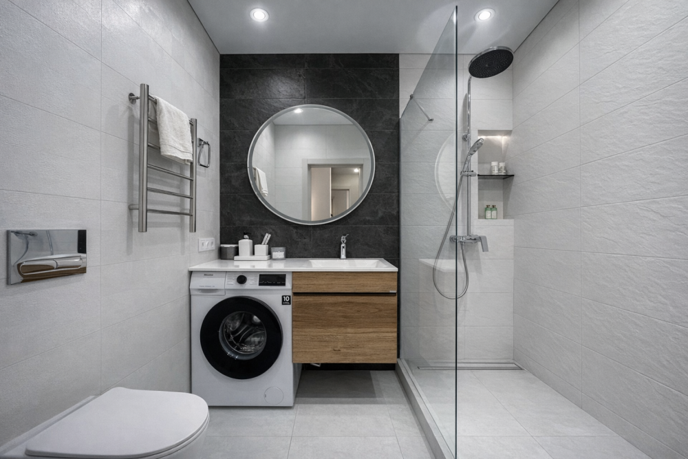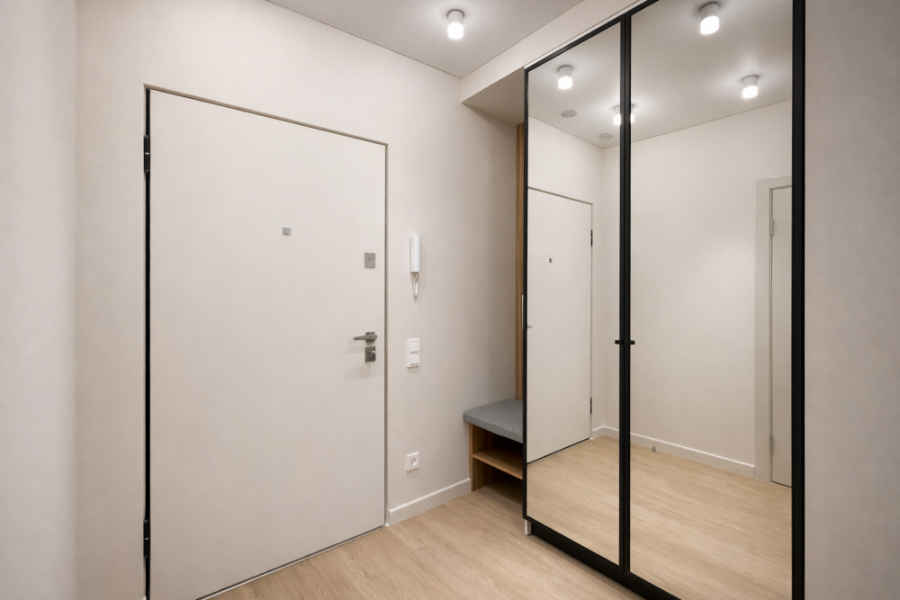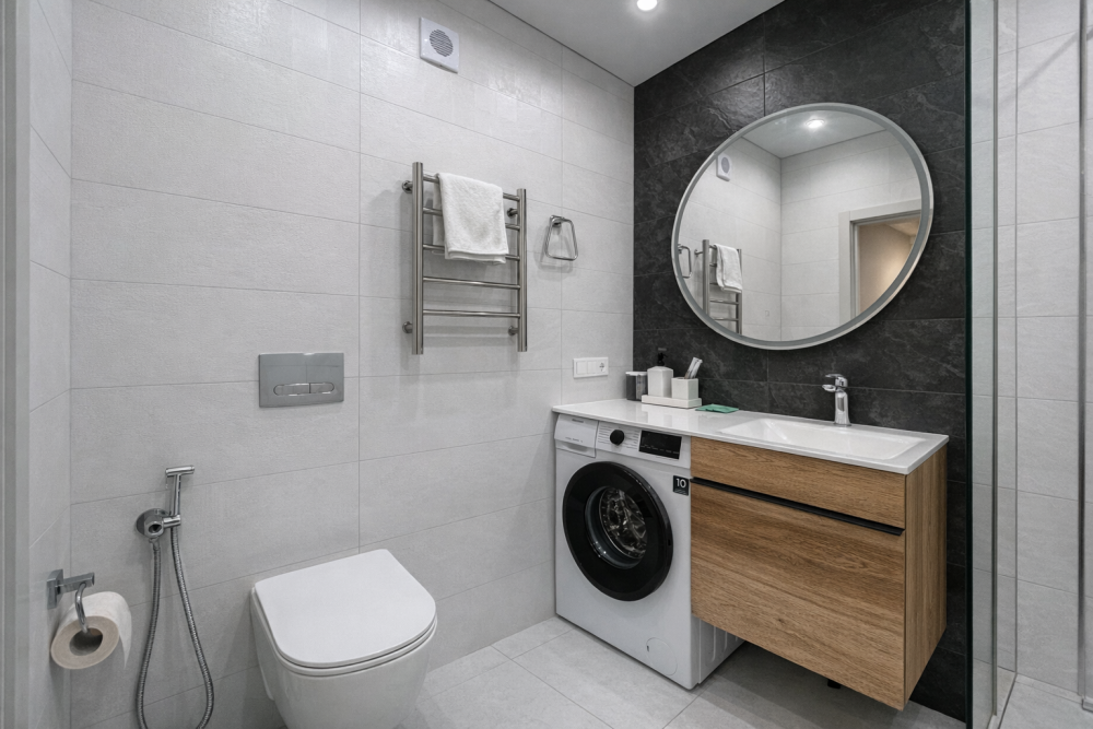 - Кухня со всем необходимым (варочная панель, холодильник, микроволновка, посудомоечная машина, посуда, приборы).