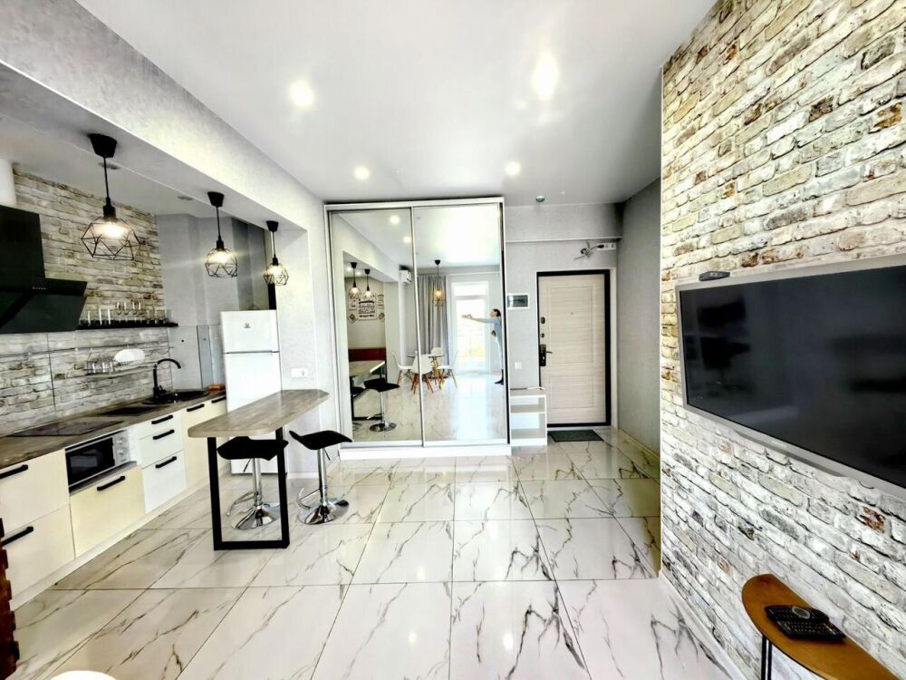 В красивых и уютных апартаментах с дизайнерским ремонтом, Вы незабываемо проведете свой отпуск или выходные. Здесь есть всё необходимое для комфортного проживания до 4-х человек.