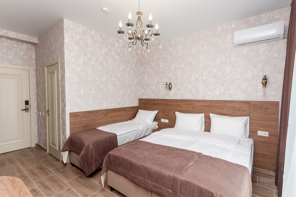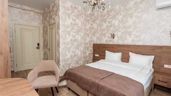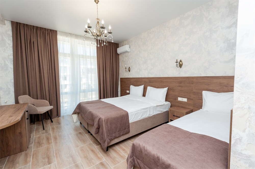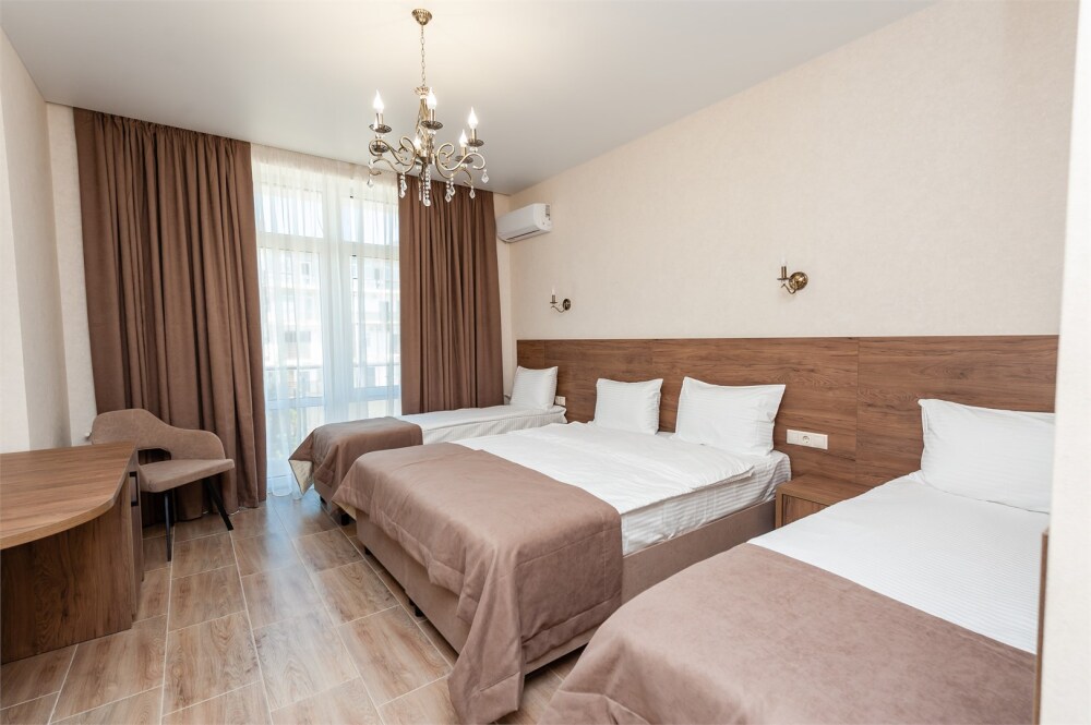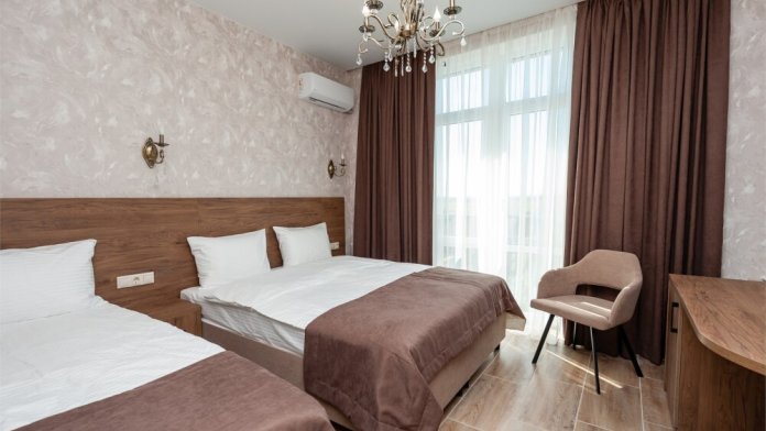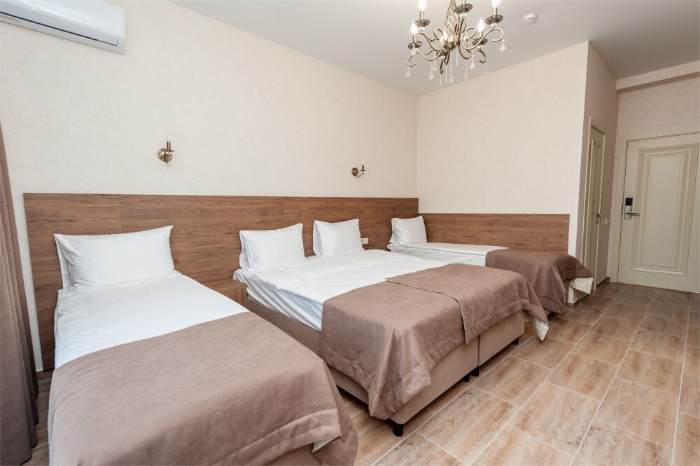 Номера расположены на первом, втором и третьем этажах. Все номера оборудованы: кондиционерами, телевизорами (кабельное тв), холодильниками, удобной и современной мебель.