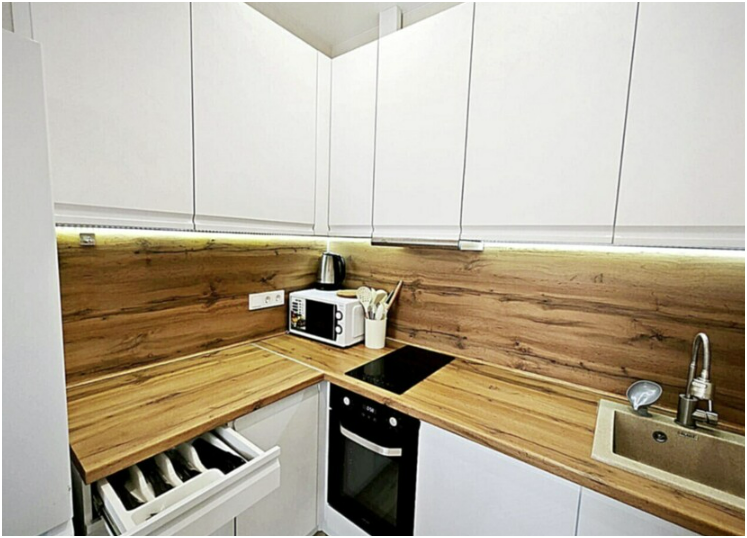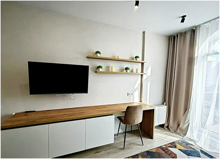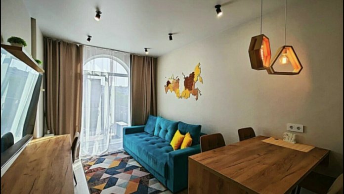 Комплектация: в спальне 2-спальная кровать, на кухне-гостиной 2-спальный диван.