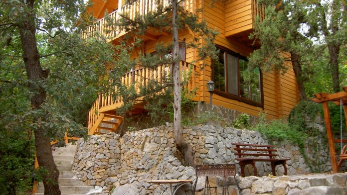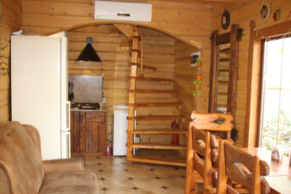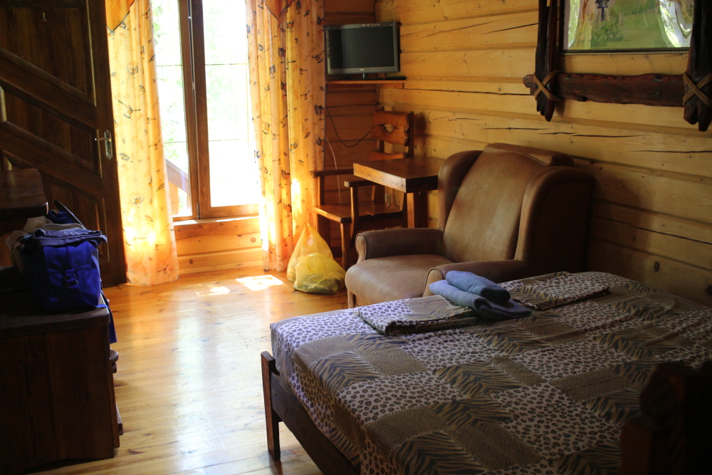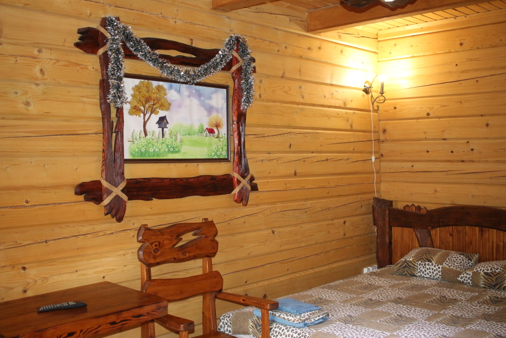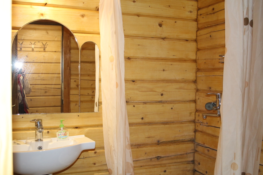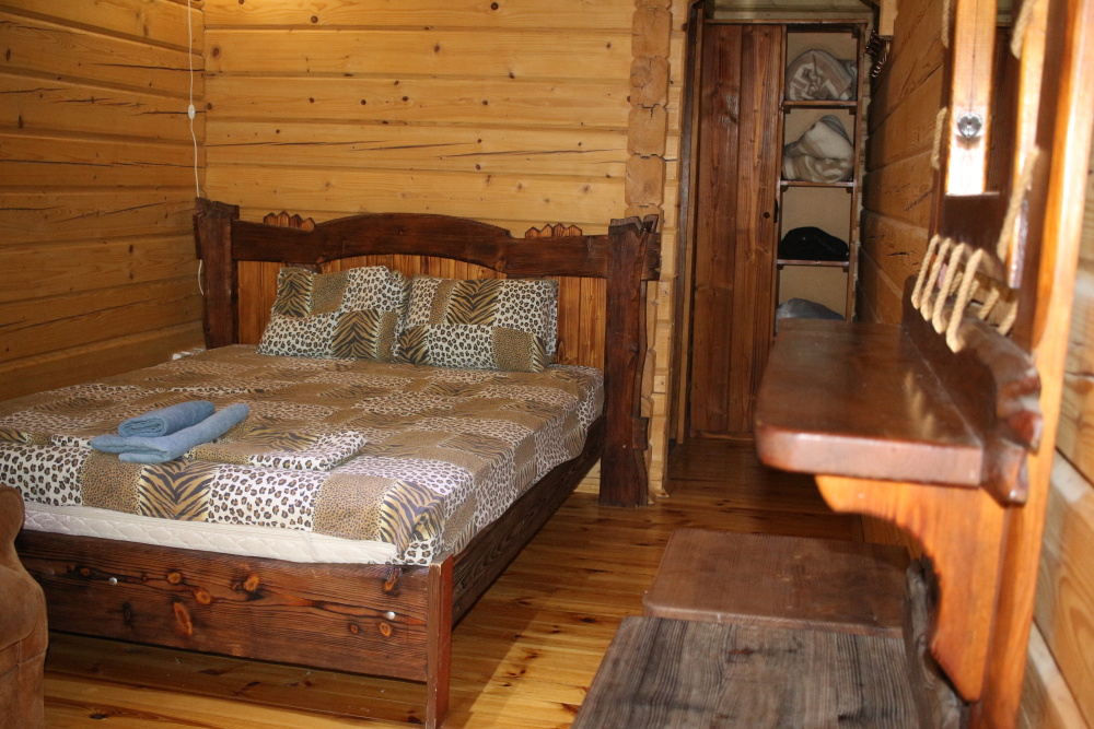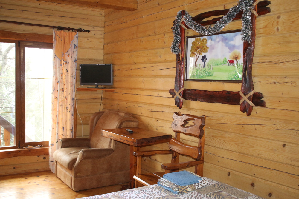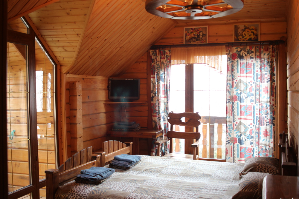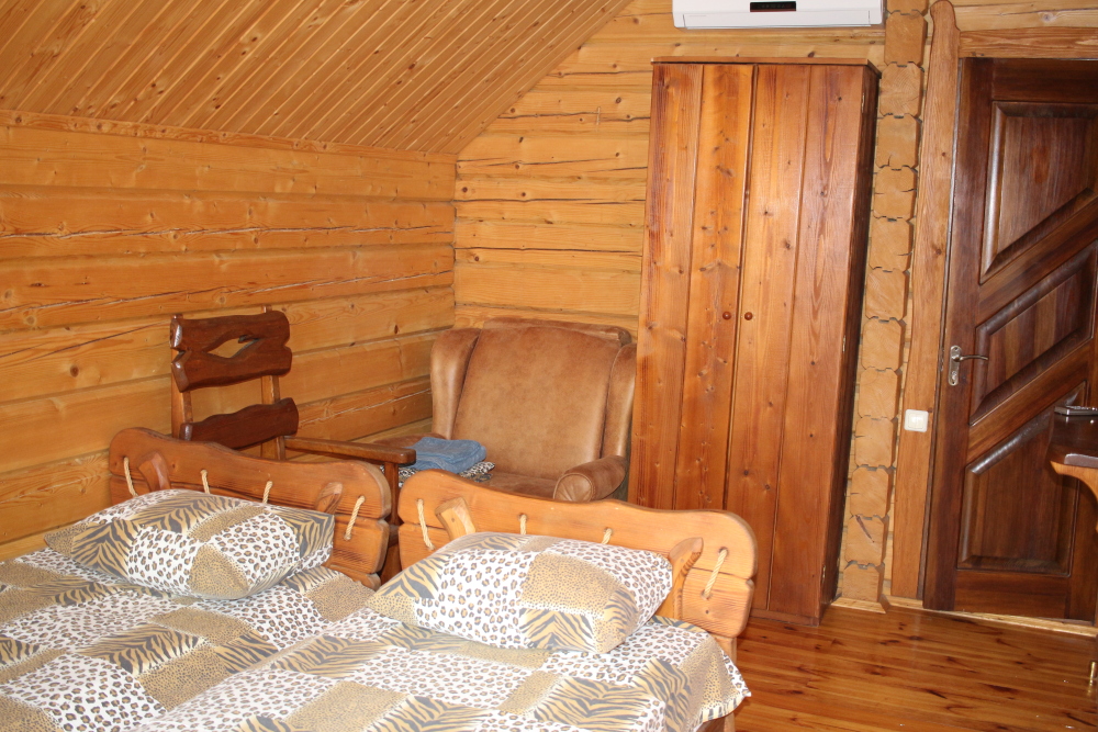 2-этажный сруб из 3-х комнат, в каждом комнате две кровати и кресло-кровать. В комнатах телевизоры, кондиционеры, на втором этаже балконы.