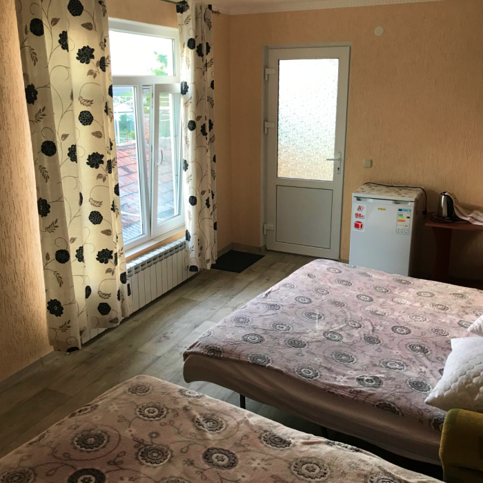 Уютная двухместная комната с двумя дополнительными местами, оборудованная отдельной душевой комнатой, холодильником с кондиционером и smart-tv